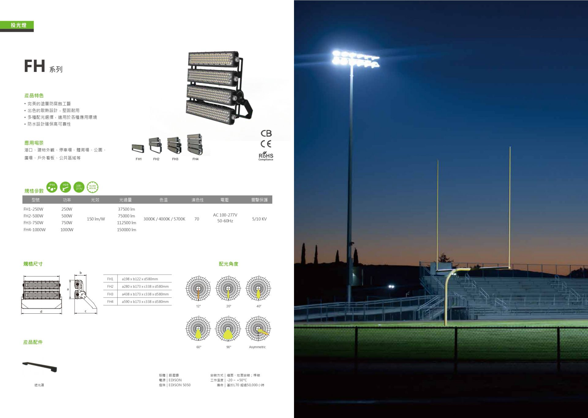 完美的塗層防腐蝕工藝,出色的散熱設計,堅固耐用,多種配光選擇,適用於種應用環境,防水設計確保高可靠性。