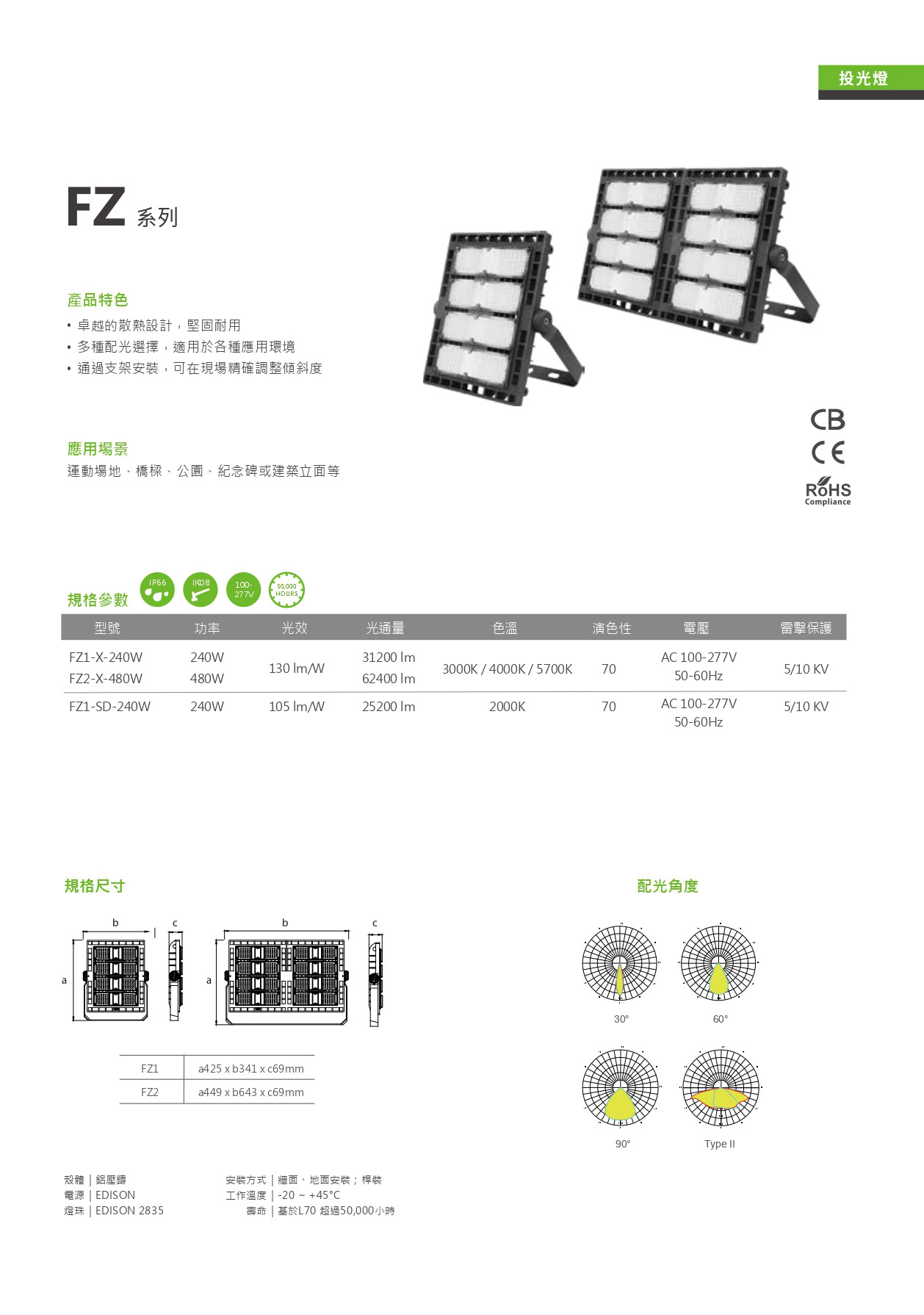 卓越的散熱設計,堅固耐用,多種配光選擇,適用於各種應用環境,通過支架安裝,可在現場精確調整傾斜度。